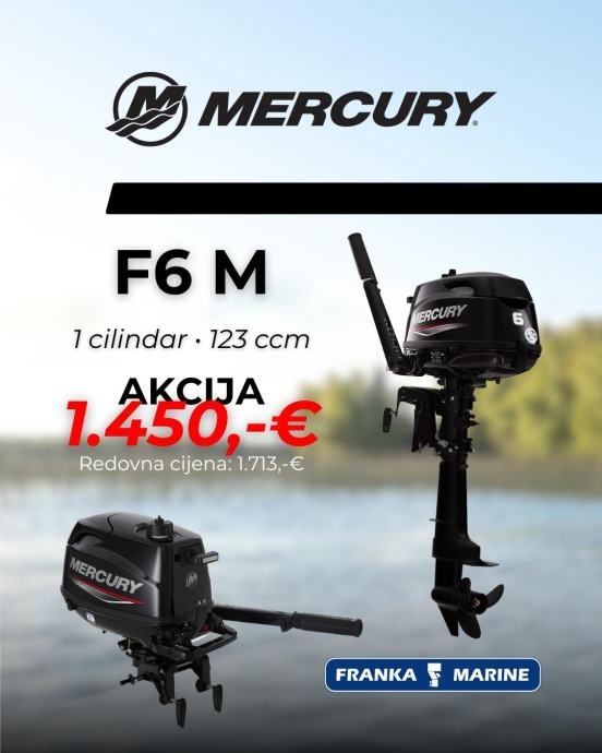 Mercury F6 M vanbrodski motor - kratka osovina, ručno pokretanje.