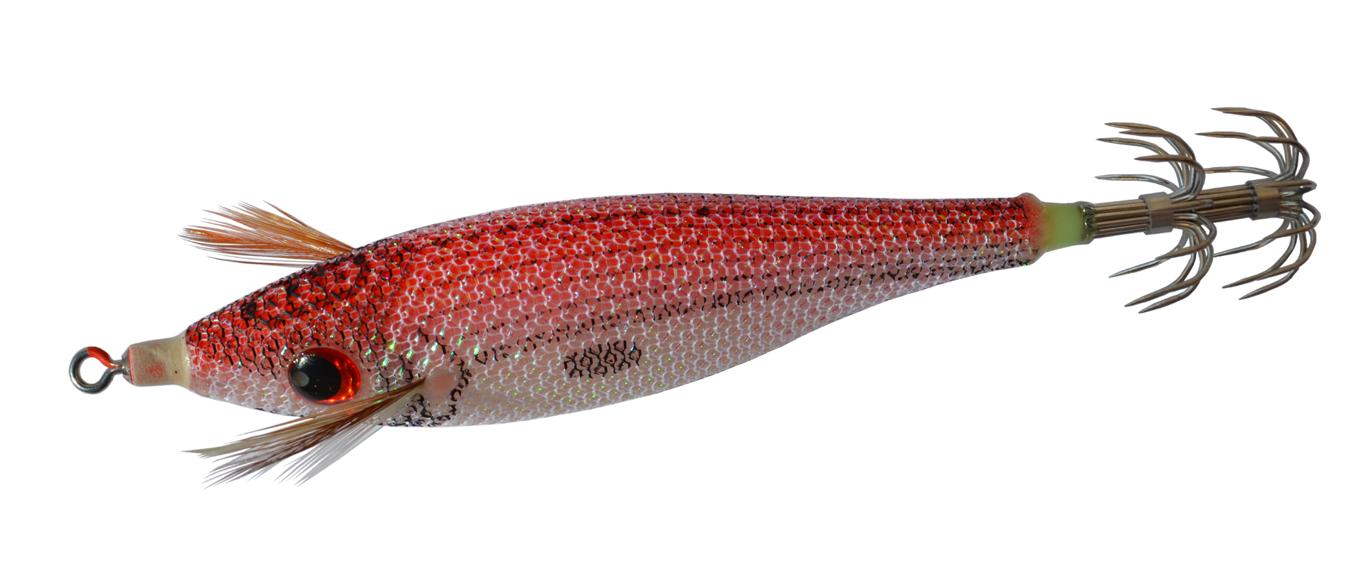 JLC Calamar 110gr Dužina tijela: 225mm Težina jig glave: 110grs. Dužina jig glave: 29mm Dužina smontirane varalice: 254mm JLC Calamar kao i mlađi brat "JLC Xipi” nudi brilijantan rad pod morem. Sa svojom dužinom tijela od 225mm, opasna je prijetnja svakom velikom predatoru poput gofa, kirnje, zubatca i krunaša. Jedna od največih prednosti JLC proizvoda (Calamar i Xipi) je integrirana jig glava i nije potrebno nikakvo dodatno otežanje. Zbog svojih jedinstvenih bočnih krakova proizvodi posebne vibracije i kretnje koje potiču ribu na griz. JLC Calamar se koristi za jigging, slow jigging i trolling. Dolazi opremljen s glavnom udicom, po potrebi se može nadodati gotov predvez "JLC Calamar Udice” sa još dvije udice za krakove koji se montira kroz glavu JLC Calamara.